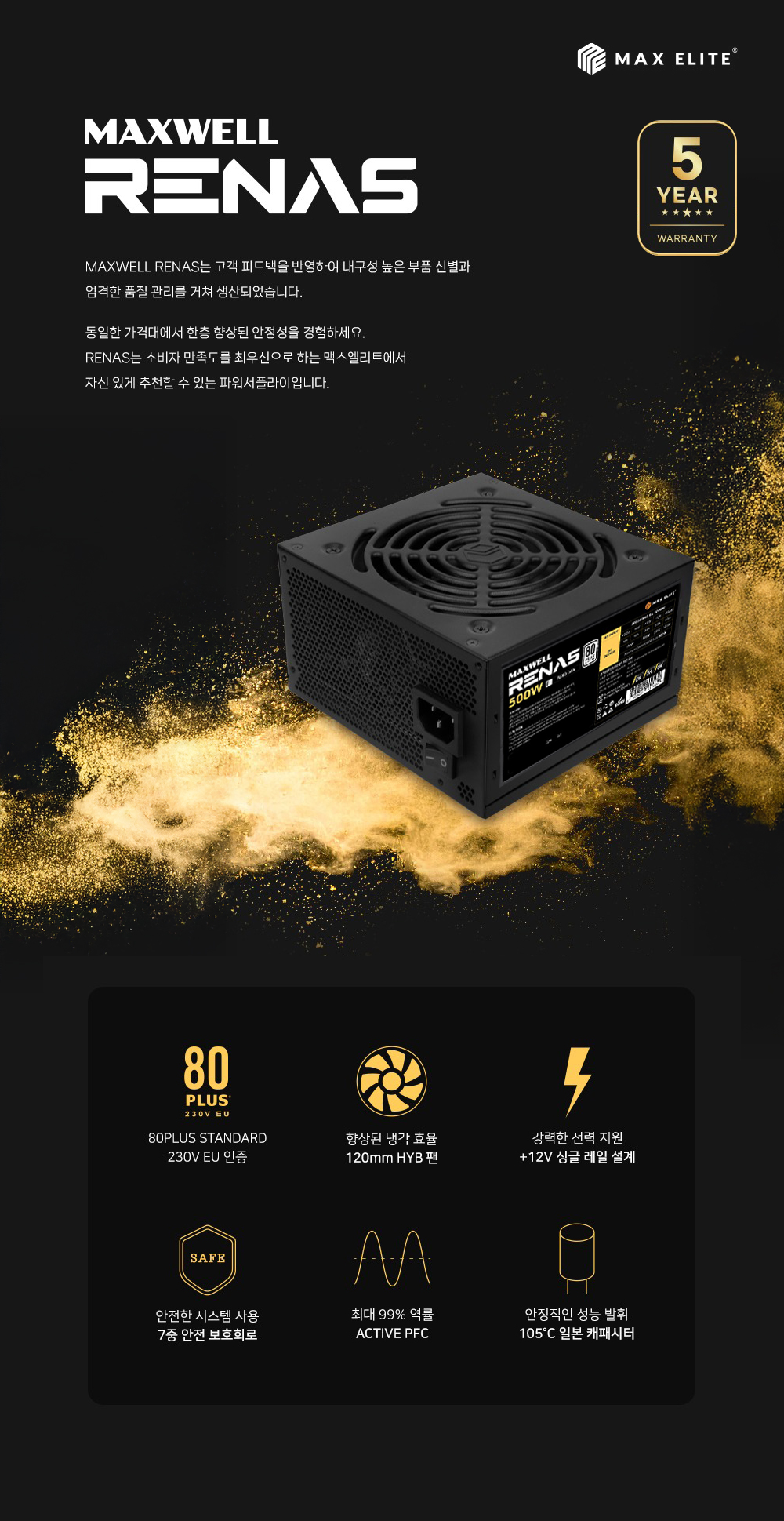 ¸Æ½º¿¤¸®Æ® MAXWELL RENAS 500W 80PLUS½ºÅÄ´Ùµå ÆÄ¿ö¼­ÇöóÀÌ